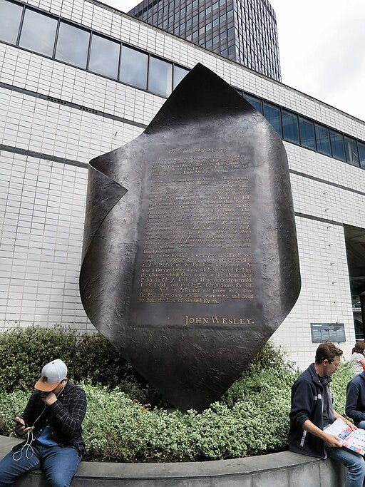 This is what we remember—the warmed heart, the assurance, the certainty that launched Methodism. So famous that it has a statue on the site, now just outside the London Museum.